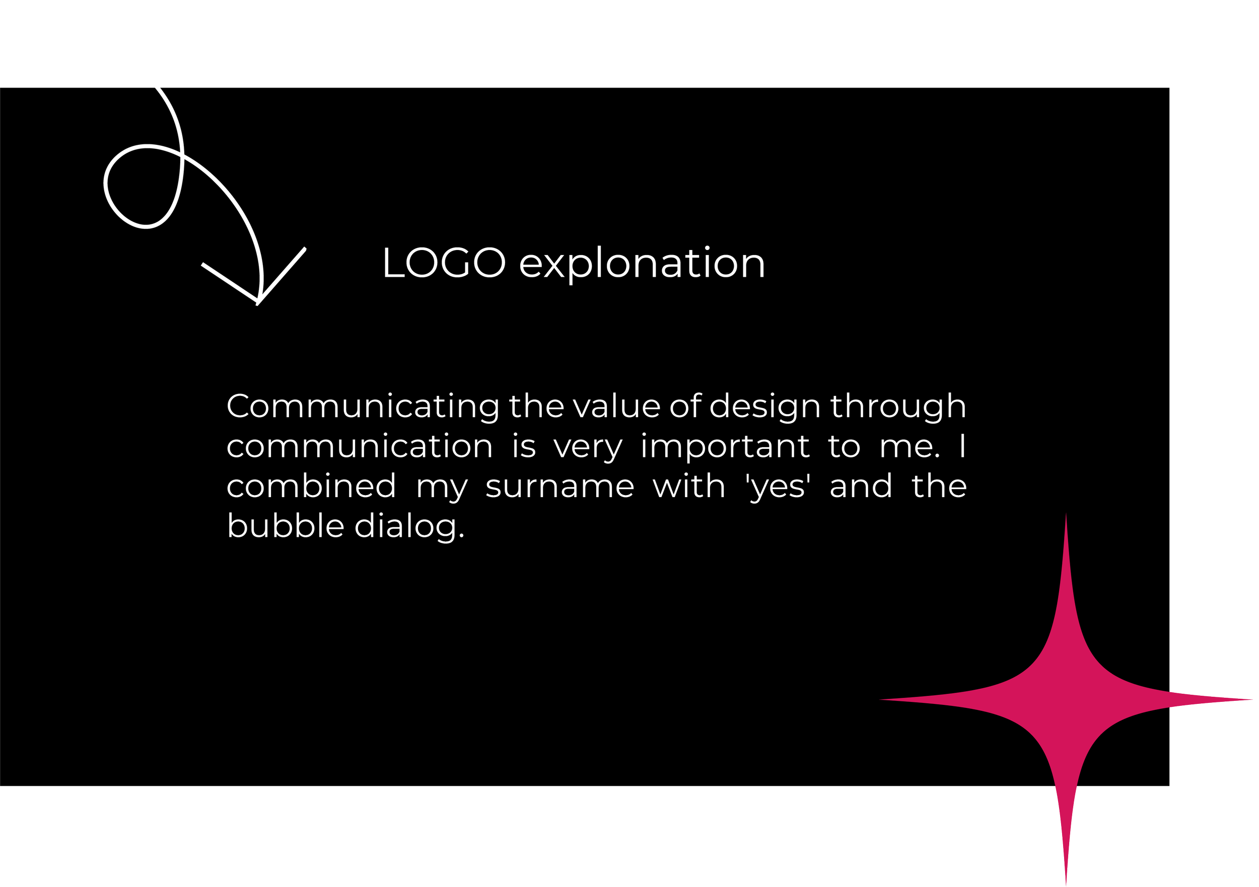 Communicating the value of design through communication is very important to me. I combined my surname with 'yes' and the bubble dialog.
